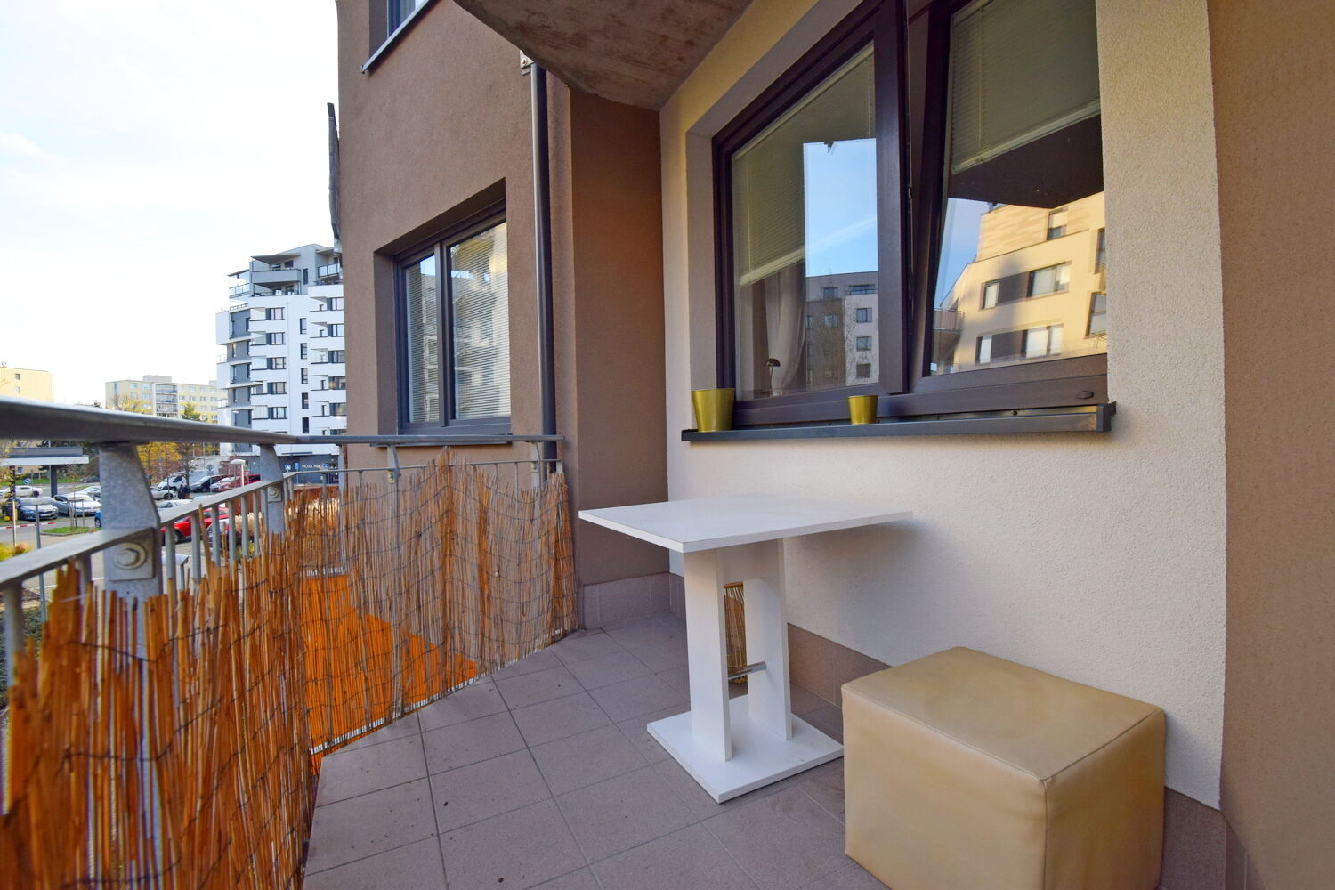 Moderní byt 2+kk 53 m2 s komorou + balkón 4 m2, v 2. NP, na JZ, v novostavbě s výhledem do zeleně v atraktivní lokalitě komplexu Prosek Park, 5 minut chůze od stanice metra Střížkov. V obýváku je kuchyňská linka na míru s myčkou nádobí, s keramickou varnou deskou, vestavnou troubou, lednicí, digestoří a mikrovlnnou troubou. Dále jídelní stůl, dvě židle, sestava lesklých černých skříněk a je možné dodat zcela novou rozkládací pohovku. V chodbě předsíňový nábytek. V ložnici je vestavná skříň a je možno dodat dvojpostel. Koupelna s vanou se sprchovou zástěnou, závěsné WC a pračka. V těsné blízkosti obchodní centrum Letňany a aquapark Letňany Lagoon, mateřská škola, jesle, dvě základní školy, střední průmyslová škola, gymnázium, poliklinika, pošta, banka i supermarket. Možnost vlastní garáže nebo parkovacího stání před domem. Volné od 1. 11. 2025.
